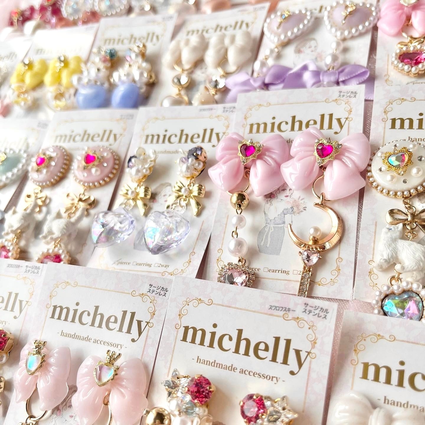 michell人気No.1 ♡♡ POPUPや委託先へお送りすると 毎回完売してくれます! アシンメトリーデザインになっております。 イヤリングは2way仕様 チャームを外してもお使いいただけます。