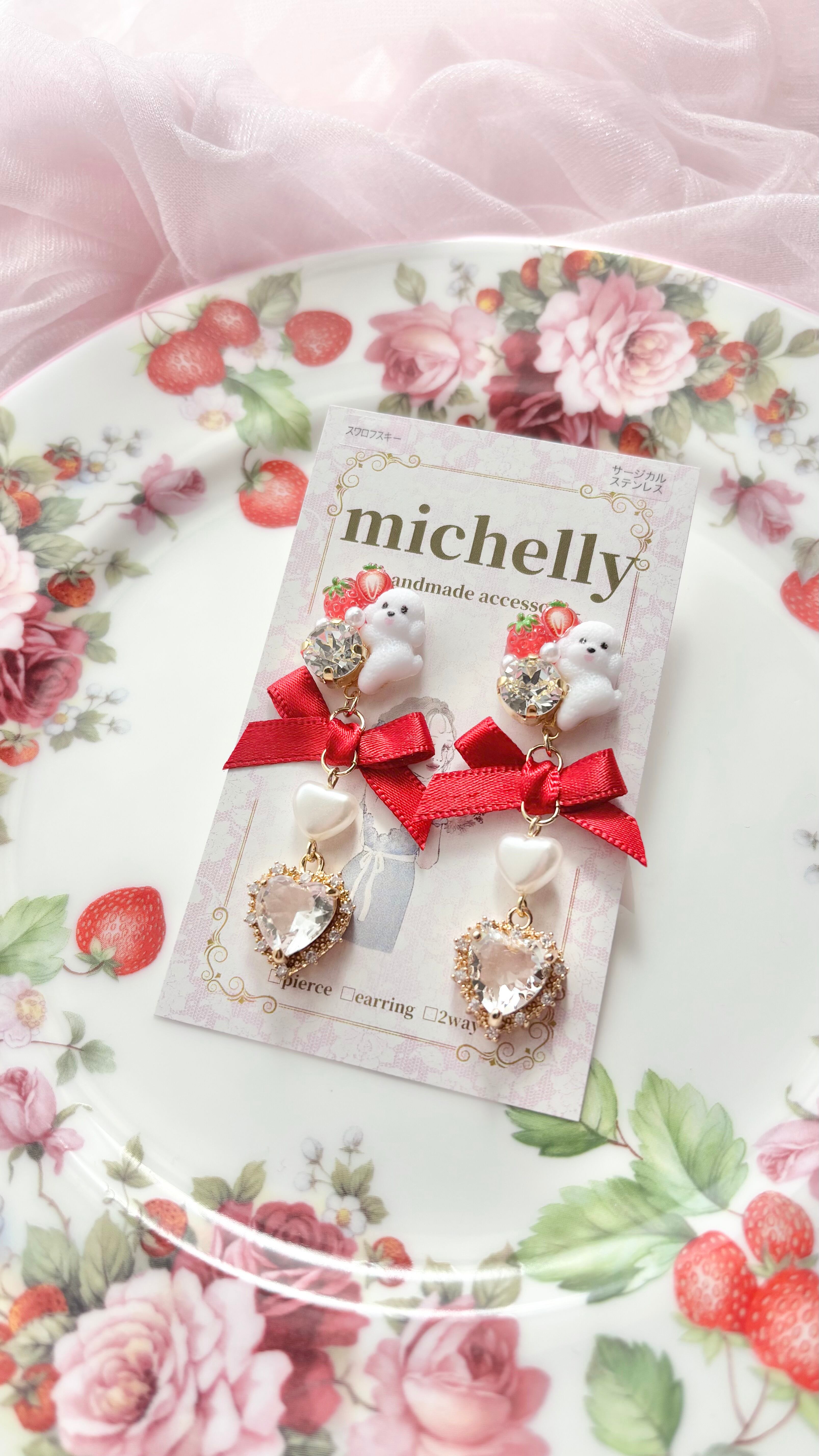 プードルわんこを添えてスワロフスキーとイチゴで彩りました!